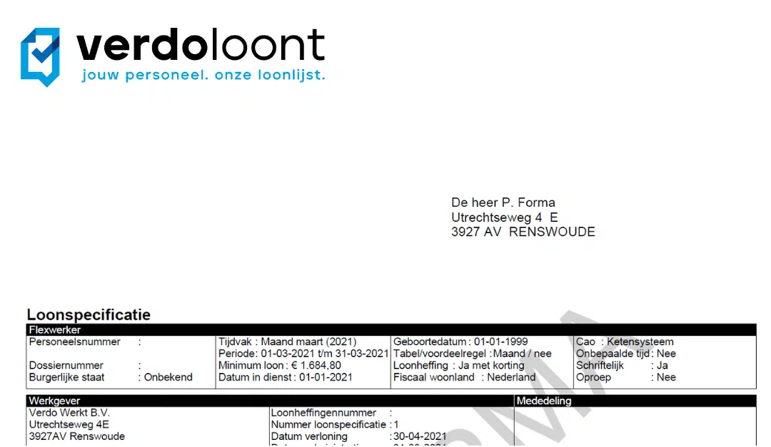 Notitie: loonstroken kunnen per bedrijf verschillen. Dit betekent ook dat een bedrijf een andere term kan hebben voor een bepaald onderwerp. We proberen een zo compleet mogelijk beeld te geven over de loonstrook van Verdo Loont.